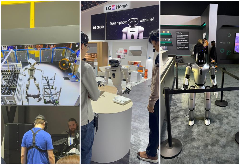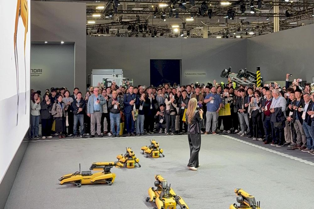 현대자동차그룹 부스에서는 보스턴 다이내믹스의 휴머노이드 로봇 아틀라스와 4족 보행 로봇 스팟이 시연되고 있었다. 아틀라스는 관절과 촉각 감지 손을 장착하고 산업 현장에서의 작업을 시연했다. 보스턴 다이내믹스의 로버트 플레이터 대표는 더 이상 보여주기식 곡예가 아니라 건설 현장, 물류 창고에서 실제로 작동하는 로봇을 만드는 단계에 이르렀다고 했다. 현대차그룹은 2028년부터 아틀라스를 공장에 투입할 계획이며, 장기적으로는 연간 3만 대의 로봇을 생산하는 로봇 공장 건설을 목표로 하고 있다.
